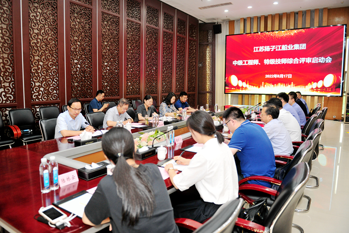 8月17日,2022年度集團船舶與海洋工程初、中級工程師評審、江蘇省特級技師綜合評審活動于新?lián)P子造船舉行。泰州市人力資源與社會保障局副局長錢筱湄、職業(yè)能力建設處處長孫曉烽、職稱處處長張曉峰、技能鑒定中心主任劉憬及職稱處副處長唐桂軍,以及靖江市人力資源與社會保障局局長王海清、黨委副書記朱建忠、辦公室主任褚云飛、技能鑒定中心主任陳玲等出席評審啟動會議并對評審工作進行指導和督查。我集團副董事長張宏飛、集團綜合管理部部長茆宏兆、新?lián)P子造船技術部部長蔣才平、集團培訓中心主任兼人力資源科科長顧鵬程等領導出席啟動會。