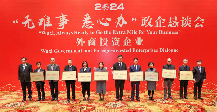 為廣泛聽取企業(yè)意見建議,持續(xù)打響“無難事 悉心辦”優(yōu)化營商環(huán)境品牌,2月23日,無錫市政府邀請(qǐng)近30家在錫重點(diǎn)外資企業(yè)代表召開懇談會(huì),面對(duì)面傾聽企業(yè)訴求和對(duì)政府工作意見建議,并為“無錫市十佳外資企業(yè)”頒獎(jiǎng)。我司榮獲該項(xiàng)殊榮,集團(tuán)黨委書記張宏飛代表企業(yè)參加會(huì)議并交流發(fā)言。