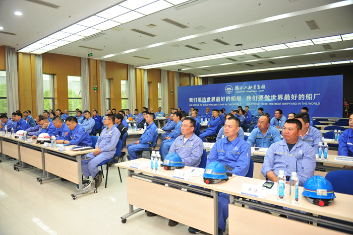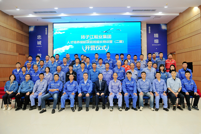 5月21日,揚(yáng)子江船業(yè)集團(tuán)人才培養(yǎng)續(xù)航項(xiàng)目第二期基本工班組長特訓(xùn)營開營儀式在新?lián)P子行政大樓多功能廳順利舉行。新?lián)P子造船副總經(jīng)理倪榮,新?lián)P子造船總經(jīng)理助理兼集團(tuán)綜合管理部部長茆宏兆,揚(yáng)子鑫福造船總經(jīng)理助理劉銀君,以及各子公司生產(chǎn)管理部、質(zhì)量管理部、綜合管理?xiàng)l線的相關(guān)領(lǐng)導(dǎo)、特訓(xùn)營所有學(xué)員、行動導(dǎo)師,共計(jì)82人參加了開營儀式。