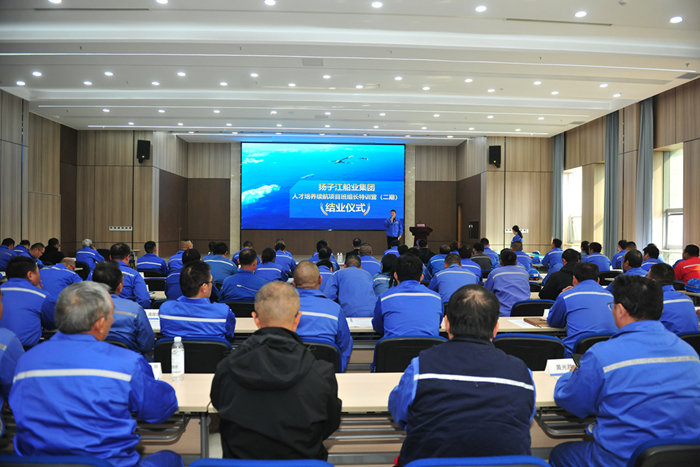 11月6日,2024年揚(yáng)子江船業(yè)集團(tuán)第二期班組長(zhǎng)特訓(xùn)營(yíng)結(jié)業(yè)匯報(bào)會(huì)在行政大樓多功能廳舉行。新?lián)P子造船副總經(jīng)理倪榮,新?lián)P子造船總經(jīng)理助理茆宏兆,揚(yáng)子鑫福造船總經(jīng)理助理劉銀君,各子公司生產(chǎn)、質(zhì)量、綜合管理?xiàng)l線(xiàn)的領(lǐng)導(dǎo)、班組長(zhǎng)導(dǎo)師及學(xué)員約90人參加。