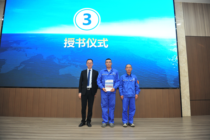 本期特訓(xùn)營(yíng)的產(chǎn)出已匯編成冊(cè),百仕瑞高級(jí)講師顧晨毅老師、新?lián)P子造船副總經(jīng)理倪榮對(duì)新?lián)P子機(jī)電車(chē)間電工四班班長(zhǎng)陳亮進(jìn)行了授書(shū)儀式,隨后陳亮介紹了手冊(cè)內(nèi)容及意義。