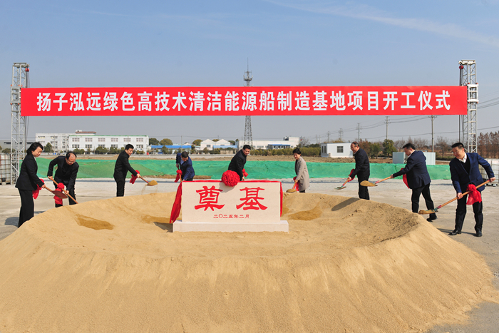 2月19日,揚(yáng)子泓遠(yuǎn)綠色高技術(shù)清潔能源船制造基地項(xiàng)目(以下簡(jiǎn)稱(chēng)“揚(yáng)子泓遠(yuǎn)項(xiàng)目”)舉行奠基儀式,正式開(kāi)工建設(shè)。靖江市委副書(shū)記、市政府市長(zhǎng)申強(qiáng)主持儀式并致辭,我集團(tuán)董事長(zhǎng)、總經(jīng)理任樂(lè)天現(xiàn)場(chǎng)致辭。泰州市委書(shū)記姜冬冬宣布項(xiàng)目開(kāi)工。泰州市委副書(shū)記、市長(zhǎng)萬(wàn)聞華,市委常委、常務(wù)副市長(zhǎng)沈峻峰,市政府秘書(shū)長(zhǎng)包亞,靖江市政府、人大、政協(xié)主要負(fù)責(zé)同志出席儀式,并為揚(yáng)子泓遠(yuǎn)綠色高技術(shù)清潔能源船制造基地項(xiàng)目培土奠基。