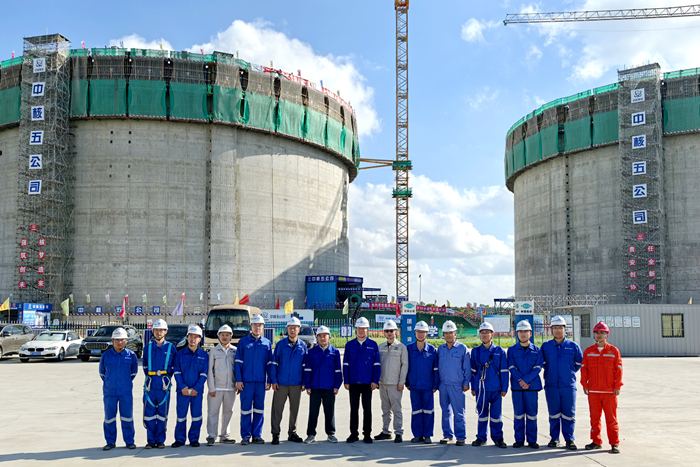該項(xiàng)目單臺(tái)LNG儲(chǔ)罐拱頂重量達(dá)463噸,氣壓頂升作業(yè)屬超過一定規(guī)模的危險(xiǎn)性較大的分部分項(xiàng)工程,技術(shù)難度與風(fēng)險(xiǎn)管控要求極高。集團(tuán)統(tǒng)籌資源,聯(lián)合中國(guó)五環(huán)工程有限公司、中國(guó)核工業(yè)第五建設(shè)有限公司,通過對(duì)氣頂升五大核心系統(tǒng)聯(lián)合檢查驗(yàn)收和全流程精準(zhǔn)調(diào)控,最終實(shí)現(xiàn)拱頂安全平穩(wěn)就位,充分體現(xiàn)了集團(tuán)在大型能源基礎(chǔ)設(shè)施建設(shè)領(lǐng)域的專業(yè)化管理能力和"造船+"管理體系優(yōu)勢(shì)。