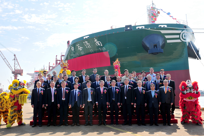 中谷海運(yùn)集團(tuán)黨委書記、董事長(zhǎng)盧宗俊先生,工銀金融租賃有限公司航運(yùn)金融事業(yè)部主管賈浩先生,中國(guó)船級(jí)社(CCS)江蘇分社黨委書記曹俊先生,上海船舶設(shè)計(jì)研究院院長(zhǎng)呂智勇先生,中國(guó)船舶重工集團(tuán)柴油機(jī)有限公司董事長(zhǎng)付向昭先生,陜西柴油機(jī)重工有限公司董事長(zhǎng)趙同賓先生,鎮(zhèn)江賽爾尼柯電器有限公司董事長(zhǎng)姚更生先生,我集團(tuán)董事長(zhǎng)兼總經(jīng)理任樂(lè)天先生,集團(tuán)副總經(jīng)理杜成忠先生、副總經(jīng)理張濤先生,副總經(jīng)理周科偉先生,以及相關(guān)機(jī)構(gòu)投資者等領(lǐng)導(dǎo)和嘉賓共同出席了命名儀式。儀式上,盧宗俊董事長(zhǎng)將首制4600TEU集裝箱新船命名為“中谷濟(jì)南”輪,他祝福新船乘風(fēng)破浪、平安啟歸、通江達(dá)海、開辟遠(yuǎn)航新篇章。隨后,盧宗俊董事長(zhǎng)與賈浩先生共同為新船砍纜并擲香檳禮。嘉賓們共同祝福新船一帆風(fēng)順,班班滿載。