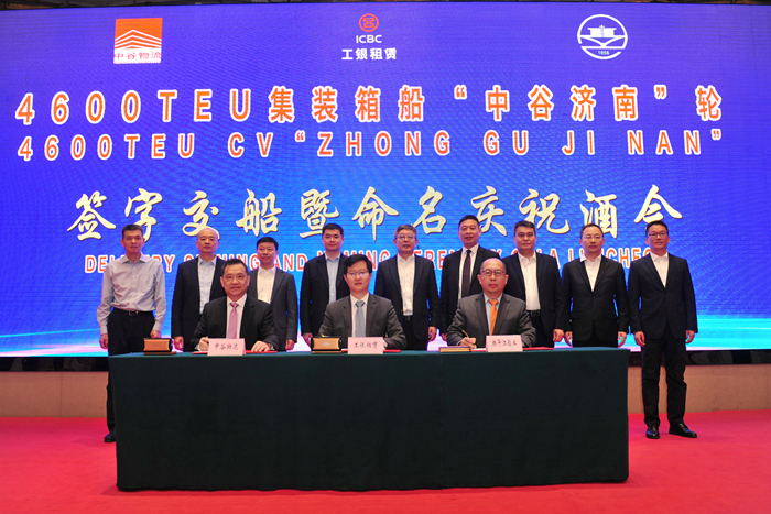 命名當(dāng)日,“中谷濟(jì)南”輪交船儀式在多方嘉賓的見證下順利完成。工銀金融租賃有限公司航運(yùn)金融事業(yè)部主管賈浩先生,中谷海運(yùn)集團(tuán)副總裁夏國(guó)慶先生,我集團(tuán)副總經(jīng)理張濤先生分別代表各方簽署交船文件。