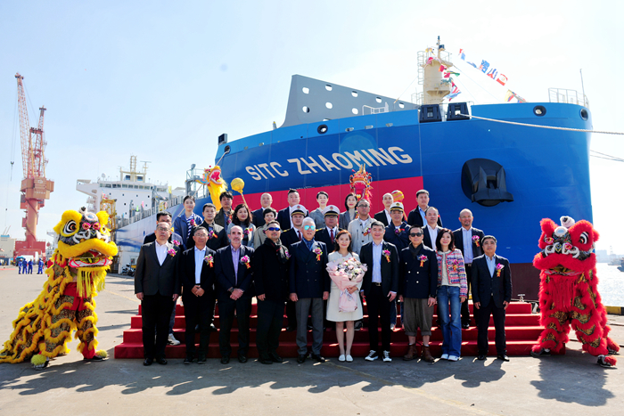 交船當(dāng)日,揚(yáng)子江船業(yè)與海豐國際在新?lián)P子造船隆重舉行了2600TEU集裝箱船“SITC ZHAOMING”(海豐昭明)輪的命名儀式。海豐國際董事局主席楊紹鵬先生,長(zhǎng)江商學(xué)院日本校友會(huì)成員,ABS船級(jí)社大中華地區(qū)總裁Paul Karam先生,我集團(tuán)董事長(zhǎng)兼總經(jīng)理任樂天先生,副總經(jīng)理杜成忠先生、副總經(jīng)理張濤先生以及各相關(guān)方的領(lǐng)導(dǎo)和嘉賓共同出席了命名儀式。長(zhǎng)江商學(xué)院日本校友會(huì)執(zhí)行會(huì)長(zhǎng)、上海誠美化妝品有限公司董事長(zhǎng)、日本誠則至美研究院株式會(huì)社董事長(zhǎng)鐘方盛先生為船舶命名。新船教母,長(zhǎng)江商學(xué)院校友事務(wù)部、日本校友會(huì)分管負(fù)責(zé)老師賽婧女士砍纜并擲香檳禮,拉響汽笛,祝福新船揚(yáng)帆萬里,平安啟歸,班班滿載。
