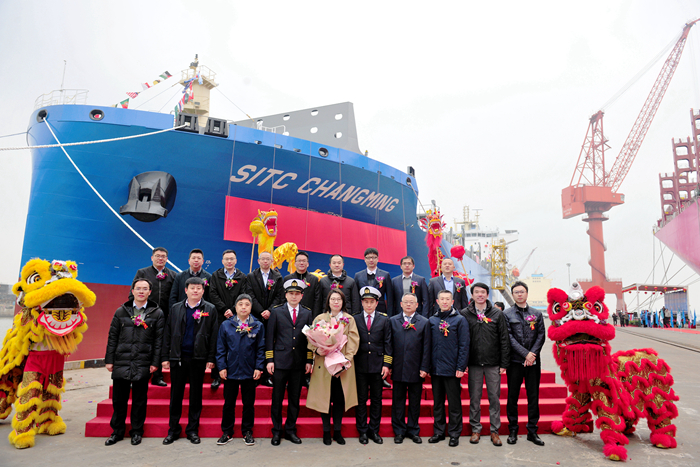 2月23日,揚子江船業(yè)與海豐國際在新?lián)P子造船隆重舉行了2600TEU集裝箱船“SITC CHANGMING”(海豐昌明)輪的命名儀式。海豐航運集團總裁助理紀文光先生,上海海豐船舶管理中心總經(jīng)理李瑞民先生,上海船舶研究設(shè)計院科技委主任萬水生先生,上海船舶研究設(shè)計院集裝箱船設(shè)計大師林潔女士,日本船級社(中國)有限公司高級經(jīng)理丁文忠先生,我集團副總經(jīng)理杜成忠先生、副總經(jīng)理周科偉先生,以及相關(guān)領(lǐng)導和嘉賓共同出席了命名儀式。
