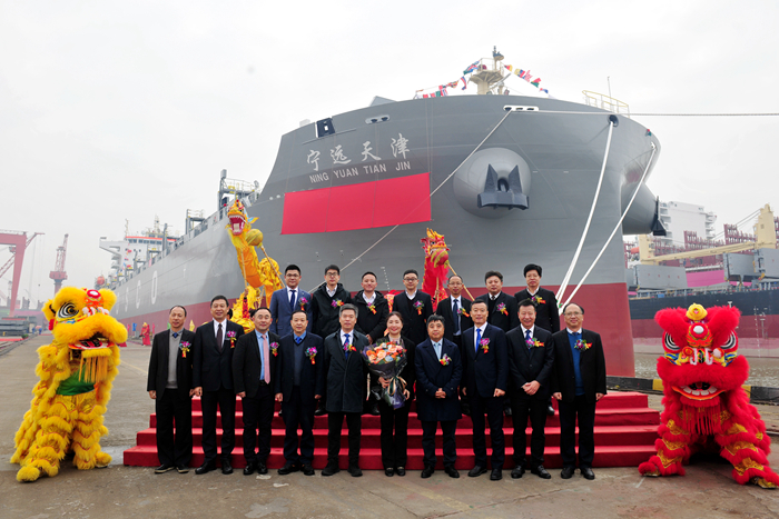 “寧遠(yuǎn)天津”輪于2023年2月點(diǎn)火開工。在寧波遠(yuǎn)洋、上海船舶設(shè)計(jì)院、雙希監(jiān)造組、CCS船級(jí)社以及船廠上下員工等各方的通力合作和相互成就下,歷時(shí)10個(gè)月建成交付。命名當(dāng)天,在各方嘉賓的共同見證下,寧波遠(yuǎn)洋黨委委員、副總經(jīng)理陳加挺先生與我集團(tuán)副總經(jīng)理兼新?lián)P子造船總經(jīng)理杜成忠先生分別代表雙方簽署交船文件。