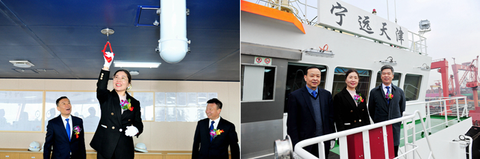 12月13日,我集團(tuán)與寧波遠(yuǎn)洋在新?lián)P子造船碼頭,共同為雙方合作的第二艘3300TEU集裝箱船舉行了隆重的命名交船儀式。新船命名人寧波航交所黨總支書記、董事長(zhǎng)、總經(jīng)理林巧女士;浙江省海港集團(tuán)、寧波舟山港股份有限公司黨委副書記、董事蔣一鵬先生;寧波舟山港股份有限公司黨委副書記、董事、紀(jì)委書記、工會(huì)主席金星先生,寧波遠(yuǎn)洋運(yùn)輸股份有限公司總經(jīng)理、黨委副書記陳曉峰先生;中國船級(jí)社江蘇分社黨委書記曹俊先生以及我集團(tuán)副總經(jīng)理兼新?lián)P子造船總經(jīng)理杜成忠先生,集團(tuán)副總經(jīng)理吉宏飛先生,新?lián)P子造船副總經(jīng)理倪榮先生等領(lǐng)導(dǎo)和嘉賓出席了儀式。林巧女士將新船命名為“寧遠(yuǎn)天津”輪,并擲香檳禮。嘉賓們共同與新船合影留念,祝福新船通江達(dá)海、班班滿載,為船員帶來平安,為船東和合作各方帶來財(cái)富和榮耀。