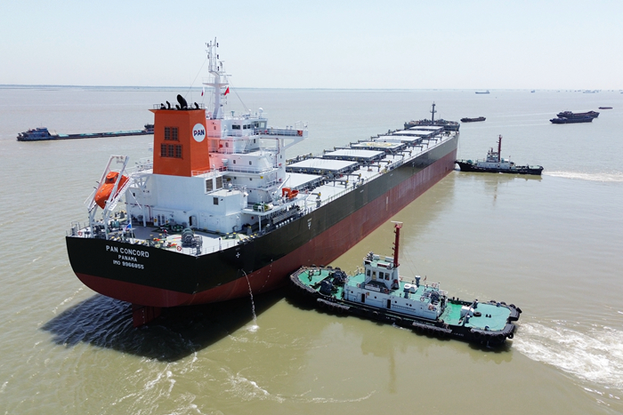 5月16日,揚(yáng)子三井造船為日本船東大河內(nèi)建造的第一艘82500DWT散貨船“PAN CONCORD”輪(掛巴拿馬旗)交付離廠,開啟首航。