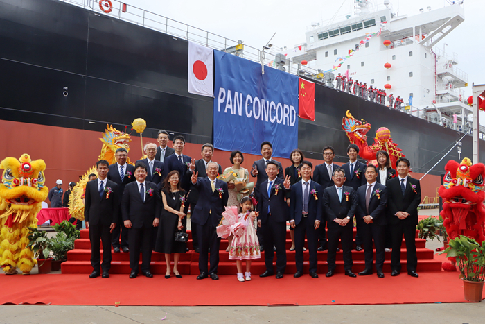 教父Jung Sangjin先生將新船命名為“PAN CONCORD ”輪,并祝愿她及隨船船員航行平安,Sponsor橘侑花小姐為新船擲香檳。鞭炮、禮花齊響,汽笛共鳴,龍獅共舞,祝福新船一切順利,為建造方帶來榮譽(yù),為船東帶來好運(yùn)與財(cái)富。大河內(nèi)啓介先生表示對(duì)新船十分滿意,并期待能與揚(yáng)子三井再次合作。新船姊妹船也將于今年交付,揚(yáng)子三井將在本船經(jīng)驗(yàn)上繼續(xù)努力,交出讓船東滿意的綠色高質(zhì)量船舶。